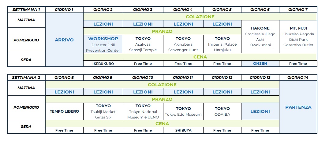 Il programma didattico e le escursioni offriranno agli studenti un’esperienza completa e coinvolgente, permettendo loro di scoprire il Giappone in tutte le sue sfaccettature: dalla cultura tradizionale alla vita urbana più moderna. Gli studenti avranno la possibilità di scoprire quartieri di Tokyo e Osaka nei momenti liberi insieme ai Group Leader.