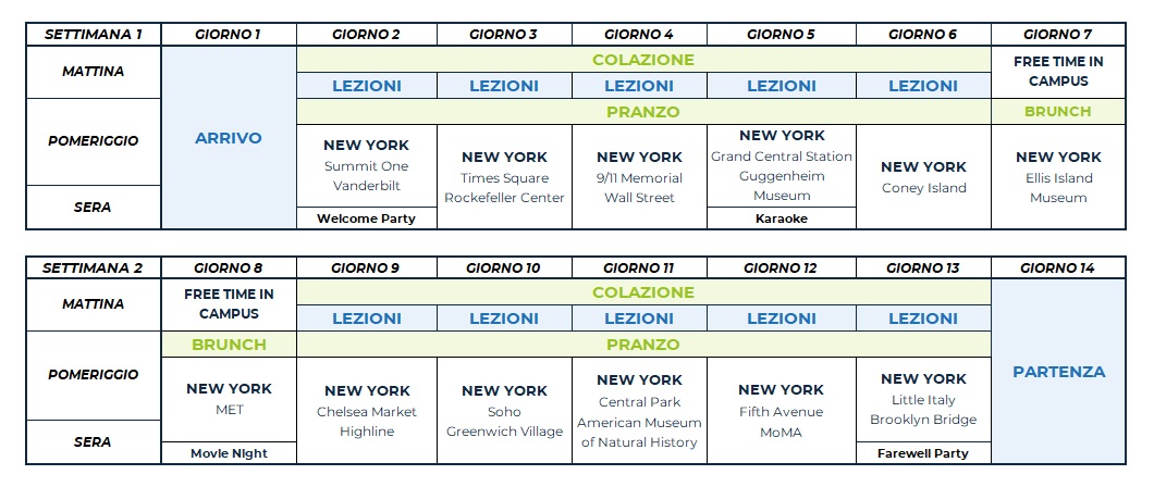 Il programma comprende attività sportive, culturali e sociali come calcio, tennis, pallavolo, basket, caccia al tesoro, teatro e attività ricreative come talent show, karaoke e discoteca. Ogni attività in college è organizzata e guidata dallo staff locale, che proporrà diverse alternative per soddisfare le esigenze di ciascuno studente.