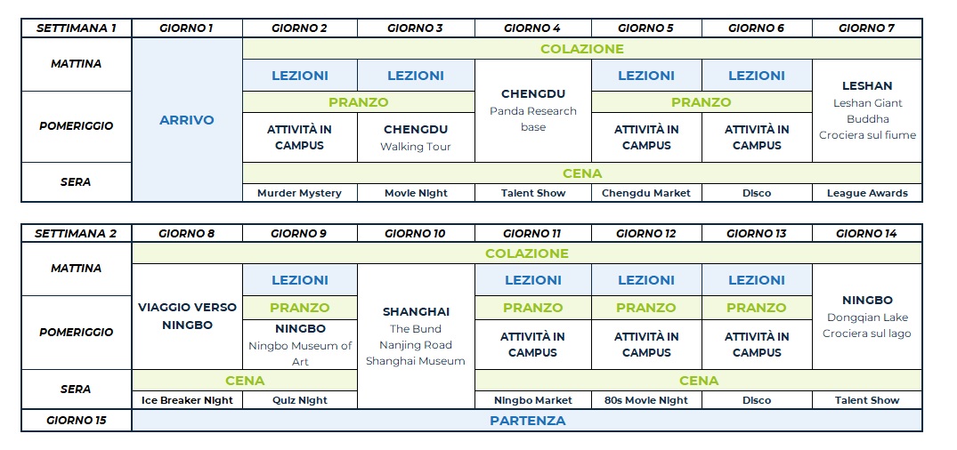 Un viaggio alla scoperta della Cina più autentica e sorprendente, tra modernità e tradizione. Da Chengdu, con i suoi panda e i profumi delle strade animate, fino a Shanghai, città pulsante di vita, mercati colorati e grattacieli futuristici: ogni giornata offre esperienze uniche, tra cultura, storia, cucina locale e panorami indimenticabili, oltre che formazione continua in lingua inglese sulla cultura cinese in tutte le sue sfaccettature.