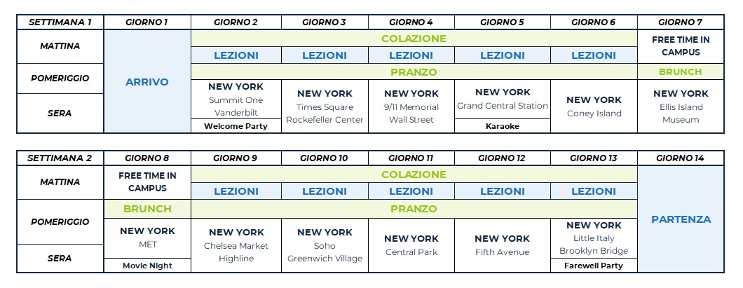 Il programma comprende attività sportive, culturali e sociali come calcio, tennis, pallavolo, basket, caccia al tesoro, teatro e attività ricreative come talent show, karaoke e discoteca. Ogni attività in college è organizzata e guidata dallo staff locale, che proporrà diverse alternative per soddisfare le esigenze di ciascuno studente.